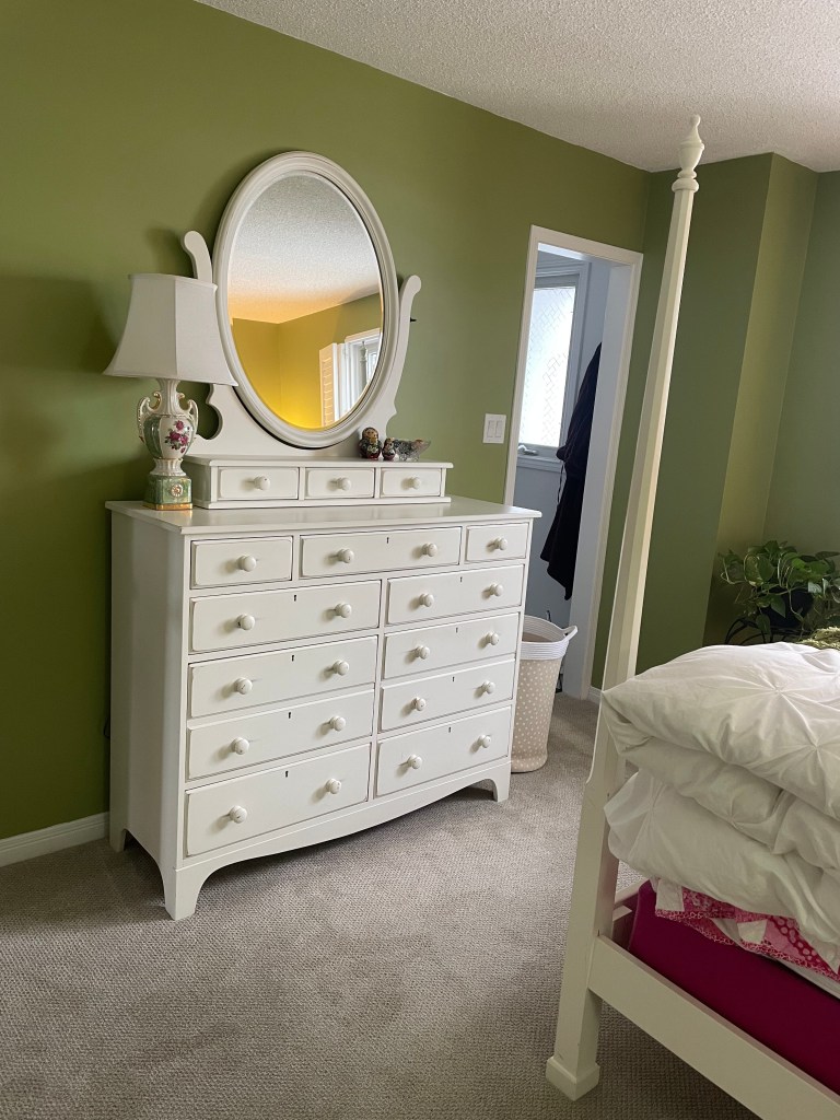 In the quest to clean out the primary bedroom the hard yards have been completed….the clothes have been culled or cleaned and repaired and the closet and dresser drawers have been organized. We’ve gone through the dark corners.